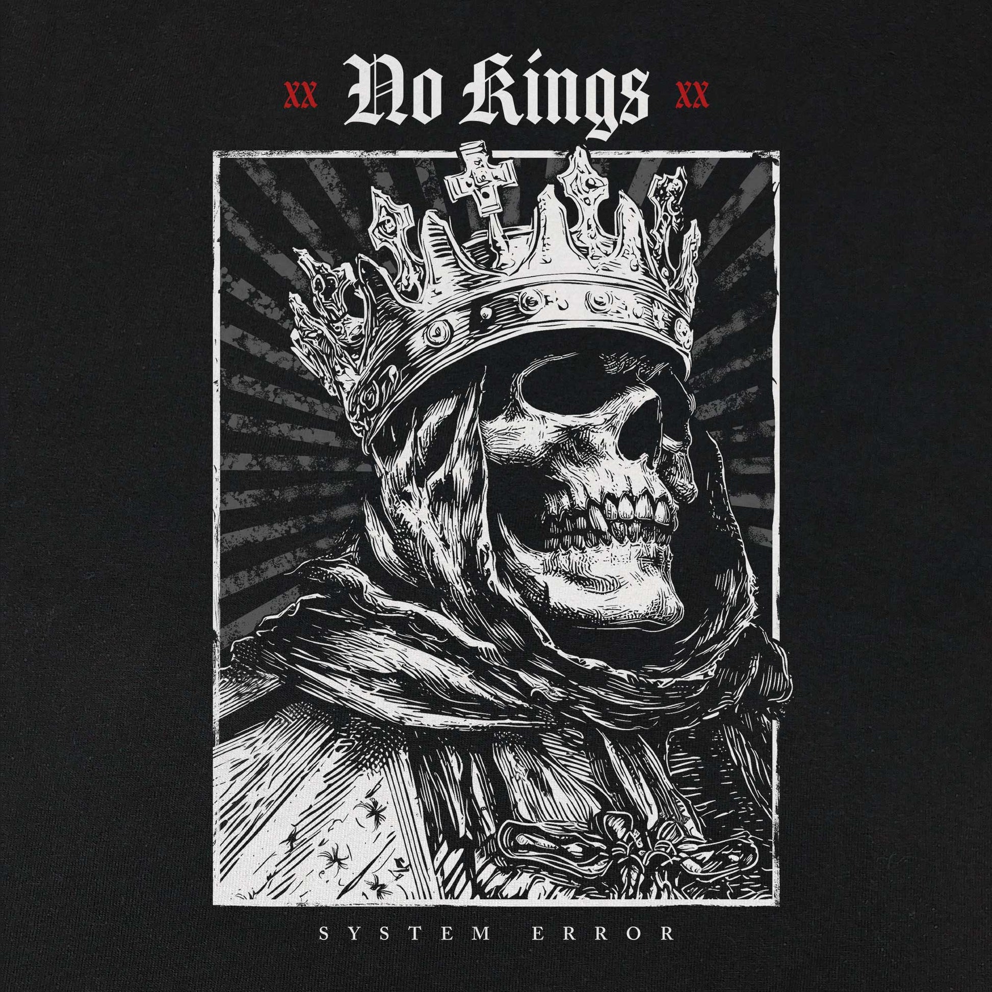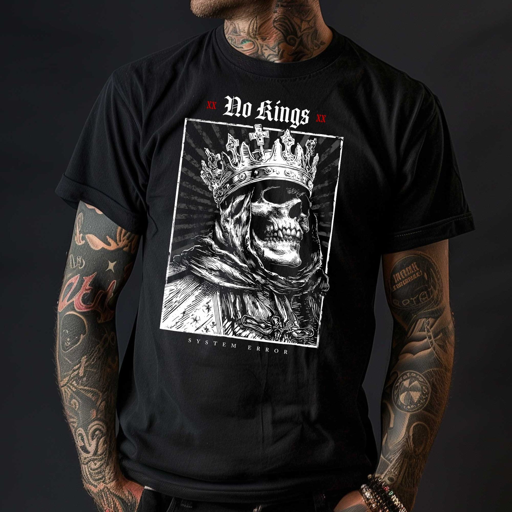 Dieses Statement-Shirt trägt deine Haltung nach außen: Keine Hierarchien, keine Autoritäten, keine Unterwerfung. Der markante Totenkopf-Print steht für Widerstand gegen jede Form von Herrschaft – ob politisch, religiös oder gesellschaftlich.